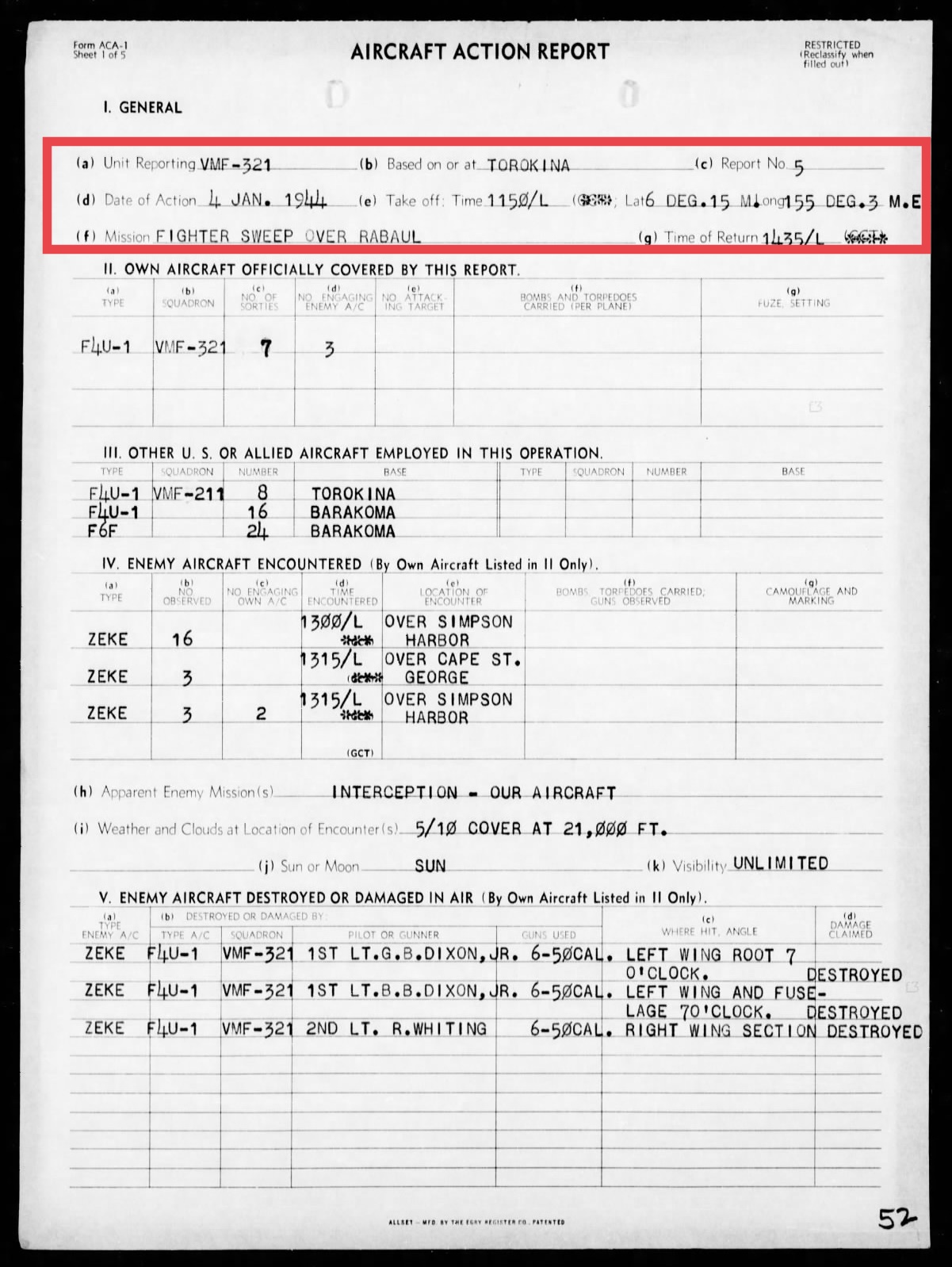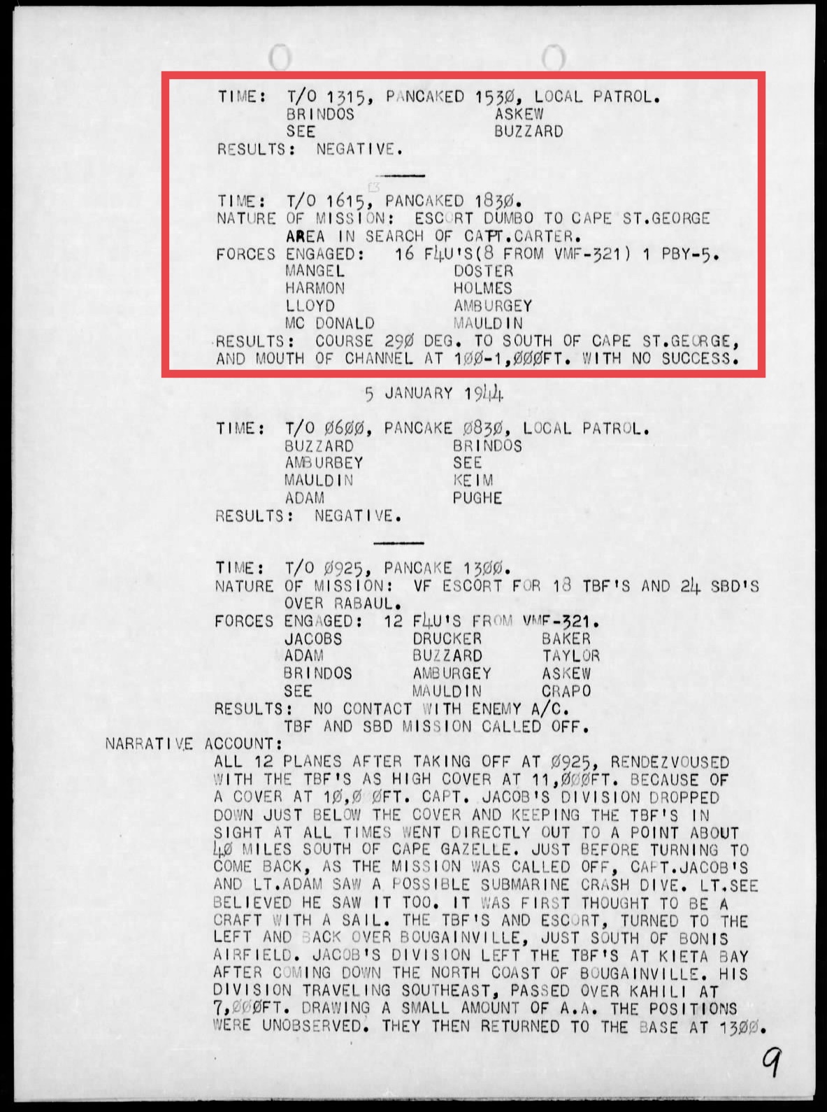 Well, did my research and discovered on the 4 Jan 1944, 40 aircraft from the 13th Air Force were involved. The 13th AF included Marine Fighter units. As you can see below, some of the Marine Units that participated in a similar mission the DAY BEFORE…….so I’ll will try and find out of Capt Carter was part of these squadrons