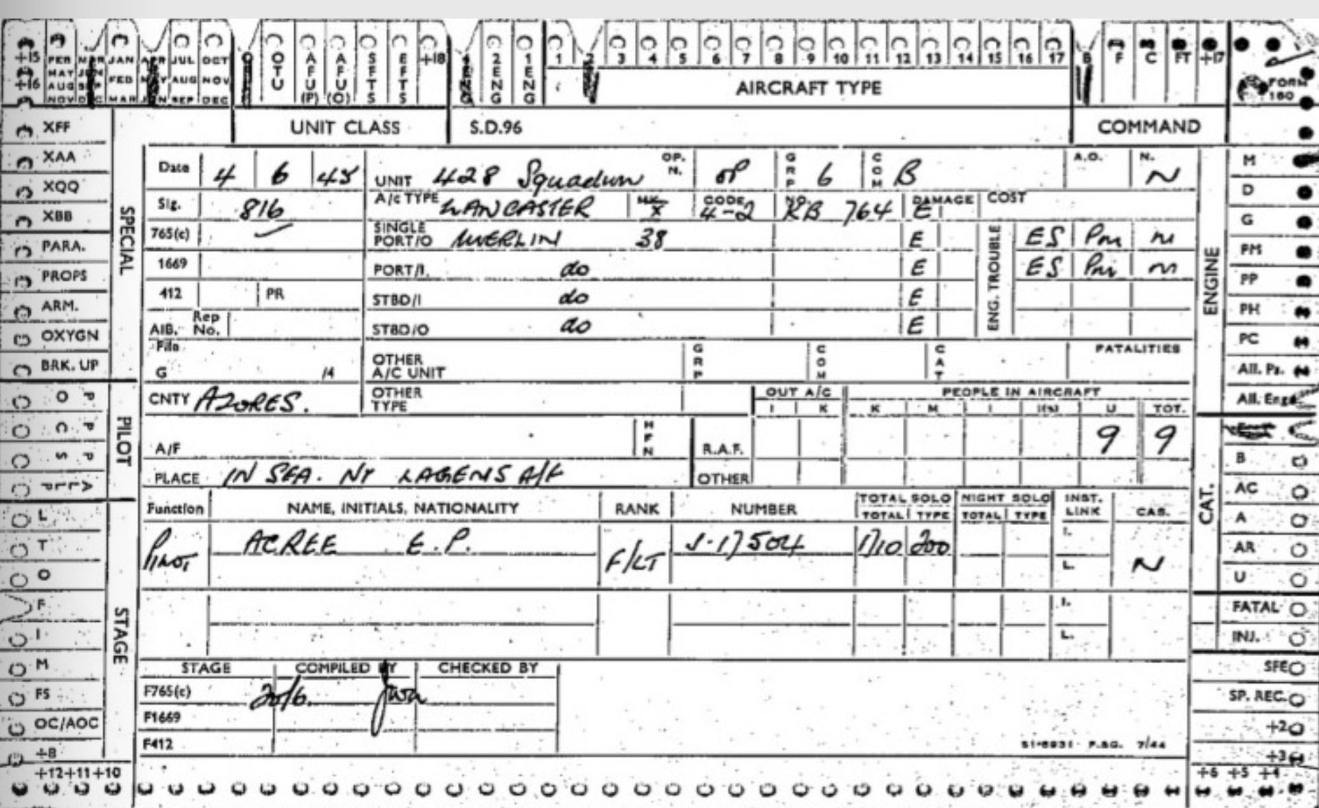We always have interest in any documents that you may have. Please feel free to post here on this website……..or if you’d rather send them privately……please PRIVATE MESSAGE me on this website and I’ll share my e-mail address with youRAnnePat wrote: ↑Wed Jan 08, 2025 12:44 pmHello. I’m am a daughter of the navigator on the Lancaster KB764 the ditched into the sea upon approach to the Azores. My parents settled in Toronto, Ontario after the war and stayed in close touch with the pilot, Paul Acree, and his wife, who settled in Rainy River, Ontario. I have few records (most lost when the plane sank) and photos of some crew and their wives. Any interest?